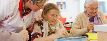 Die soziale Betreuung in den Wohngruppen ist ein wesentlicher Bestandteil im Alltag unseres Hauses. Unsere Betreuungskräfte unter Leitung einer gerontopsychiatrischen Fachkraft sorgen für ein abwechslungsreiches Programm an allen Wochentagen. Die therapeutische Arbeit orientiert sich dabei immer am Gesundheitszustand des Bewohners und geschieht in individuellen Einzel- und Gruppenangeboten. Dazu gehören Aktivitäten wie Gedächtnistraining, Sitzgymnastik, gemeinsames Singen und kreative Beschäftigung. Das regelmäßige gemeinsame Kochen und Backen in den Wohnküchen oder die Mitarbeit im Garten bezieht die Fähigkeiten unserer Bewohner in die Betreuung gezielt mit ein. Zahlreiche jahreszeitliche Feste, nicht nur an Ostern und Weihnachten, setzen Höhepunkte im Veranstaltungsprogramm. Gerne laden wir dabei verschieden Vereine und Gruppen, z.B. Chöre, aus Schwabmünchen und Umgebung ein, unserer Programm mitzugestalten. Ehrenamtliche Mitarbeiter wirken an der sozialen Betreuung intensiv mit.