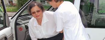 Für Rollstuhlfahrer steht ein Spezialfahrzeug zur Verfügung. Unsere Mitarbeiter übernehmen nicht nur die Beförderung, sondern helfen Ihnen auch beim Treppen­steigen, tragen Ihr Gepäck und begleiten Sie ins Wartezimmer.